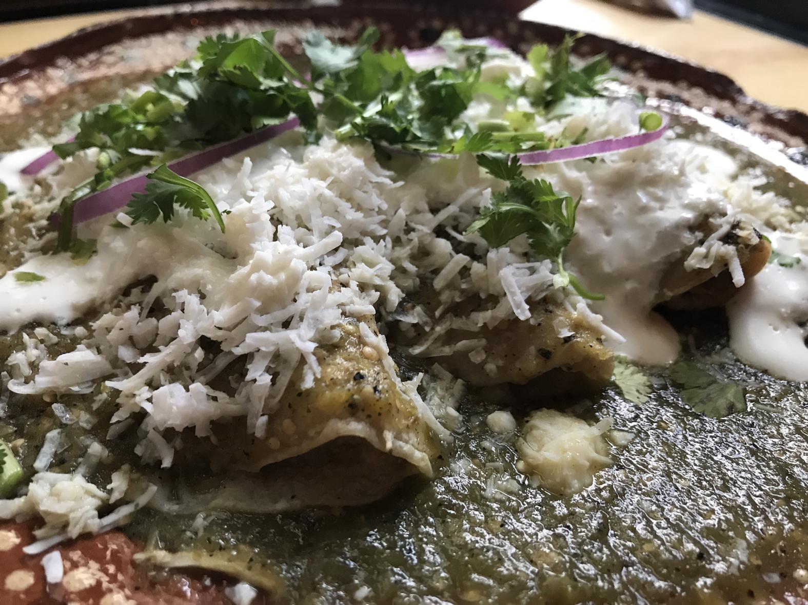 Pero si de enchiladas diferentes se trata, la joya de la corona de la carta — que son las que más se venden— son las enchiladas sin tortilla. “Me han dicho de todo por estas enchiladas. Es curioso, porque de entrada mucha gente no las considera enchiladas, pero una vez que las prueban se enamoran. Lo que hacemos es gratinar queso en parrilla y ahí el chiste es saber ser un buen parrillero: el queso hace como una costra pero no tan dorada, y con ella se envuelve la carne”.