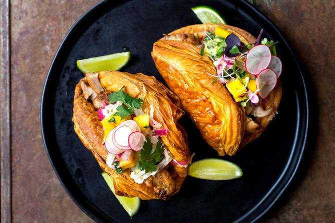 El tacro es un acrónimo de taco y croissant; el producto que está causando furor en las calles de San Francisco es básicamente un taco dentro de un croissant abierto.