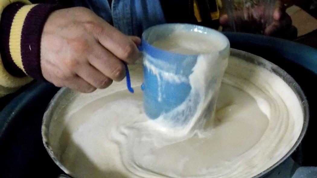 “Pásasela al chaparro, el que está en el rincón”, le dice a la mujer que le ayuda en el negocio mientras le extiende un tarro de pulque blanco. “No lo vayan a pisar. Por eso está hasta el rincón, el güey”. El hombre sonríe y en seguida ofrece su pulque a otro sujeto que entra por la puerta.