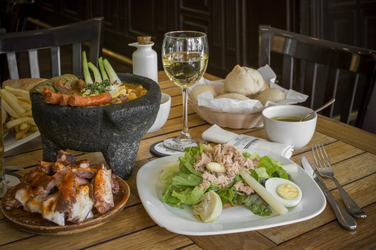 Otro ejemplo delicioso son las codornices a la cazadora que vienen con cebollitas, papas cambray y zanahorias, o la cazuela Segoviana, una selección de cortes de lechón, codorniz y cordero con papas panaderas y pimientos de Gernika.