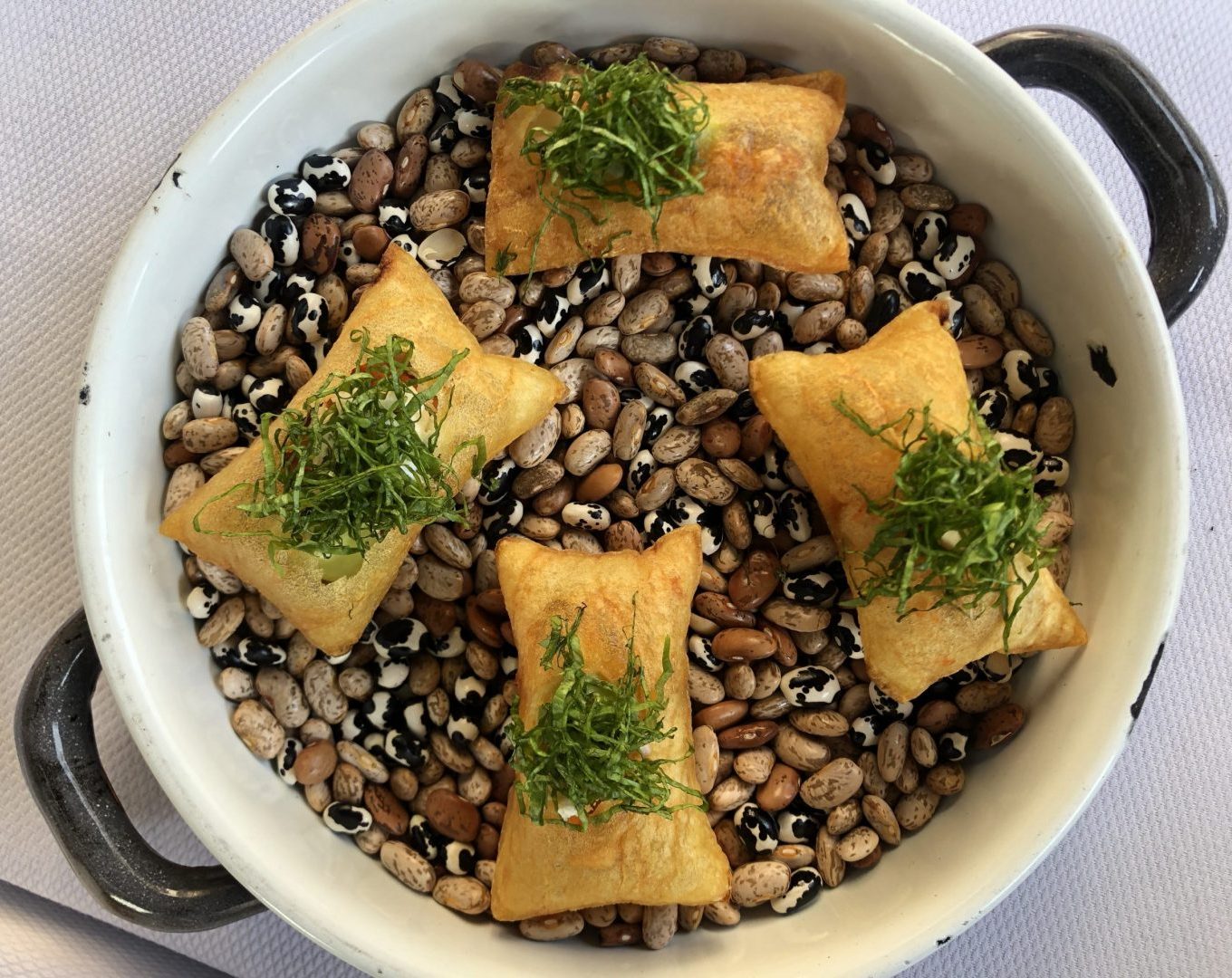 Si todavía queda Moscow Mule y el calor lo apremia, una tostada de kampachi con salsa ponzu, vegetales fritos que evocan a los inicios de Gerard en Tezka y sustituyen coloridamente al poro y una pincelada de guacamole.