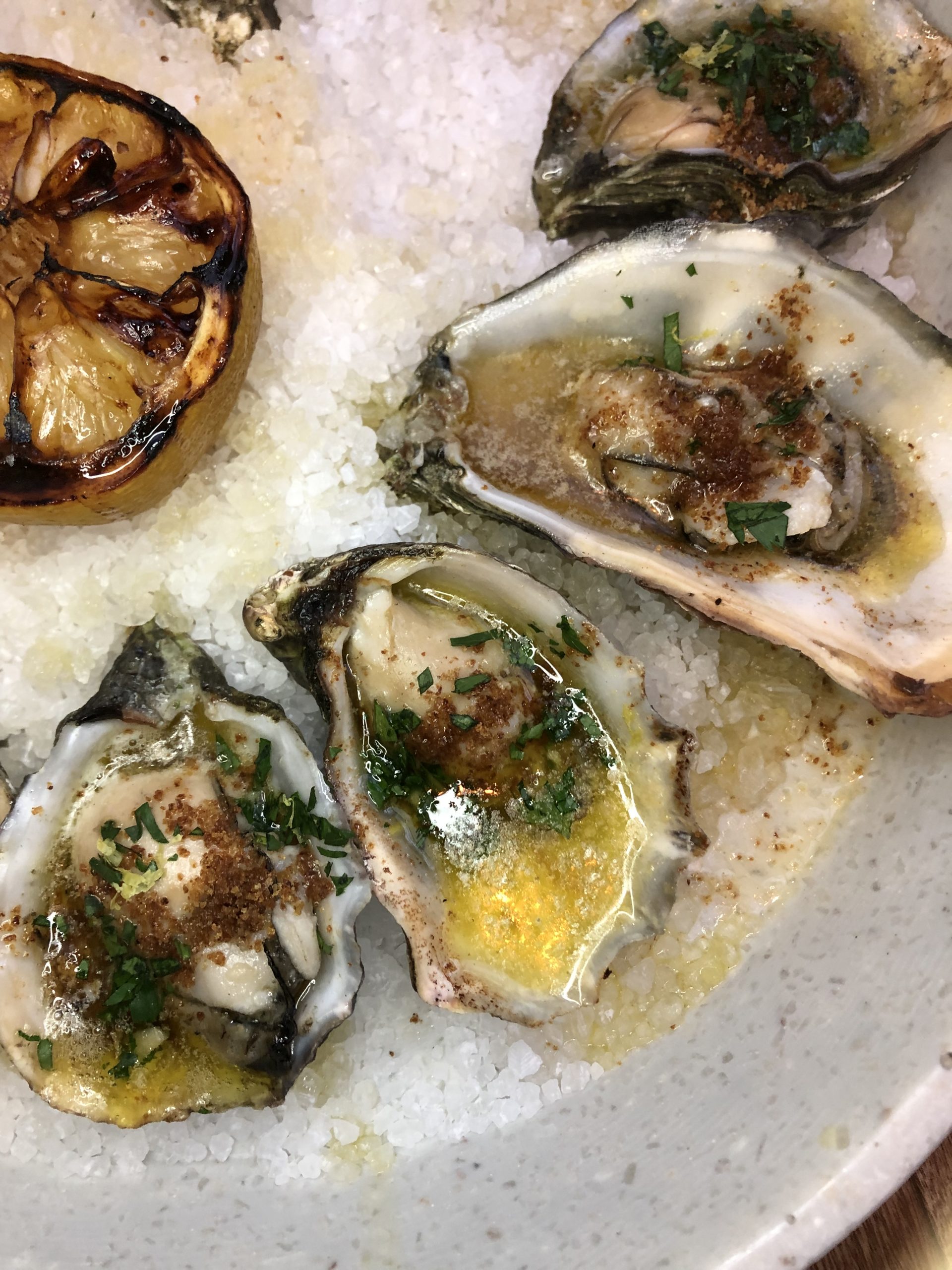 La barra de conchas y pescados llama la atención aunque no es lo mejor del lugar: aquí venimos por los asados y los sabores profundos a especias del Medio Oriente que se cuelan en la propuesta gastronómica.